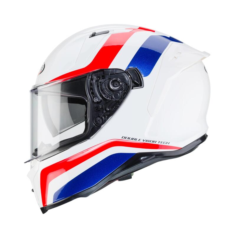 Its main feature is a wide outer visor, equipped with a lock system to prevent sudden opening, an anti-fog Pinlock lens, an integrated sunshade visor easy to move, an extraordinary ventilation granted by two vents on the top and an air extractor on the back, and the possibility to mount our JUST SPEAK EVO Bluetooth communication system. All these great features make the FLYON a contemporary helmet able to satisfy the most demanding touring bikers.