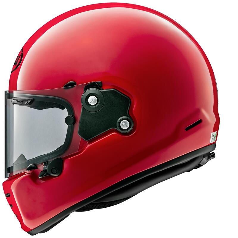The shell, resistant, light and with a smooth and rounded shape to reduce the chances for the helmet to get stuck while sliding, even if the shape is slightly different from the R75 that distinguishes the more sporty and contemporary proposals in the look, is made of PB e-cLc and further reinforced with the Peripheral Belt (patented by Arai) that allows the helmet to divert the energy of an impact (glance off) without sticking to any obstacles.