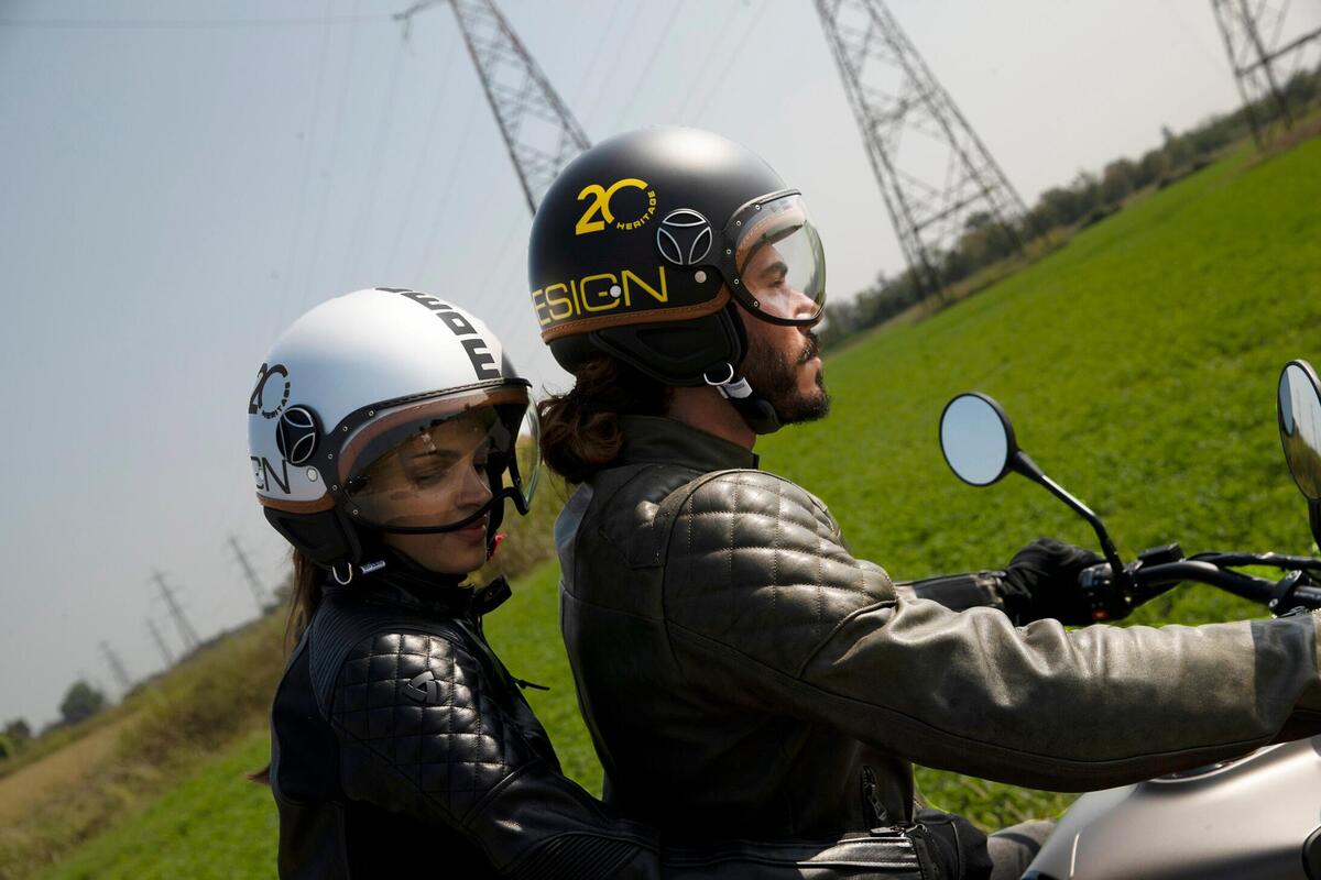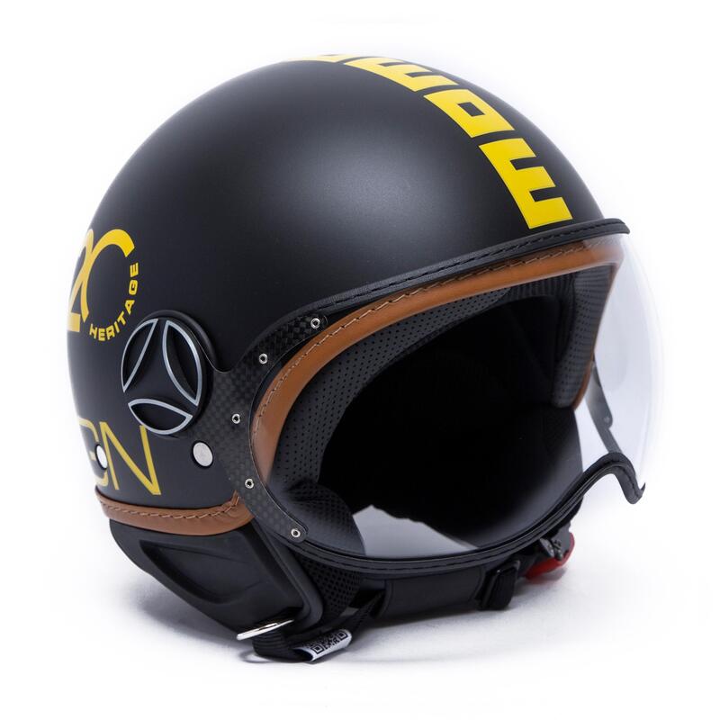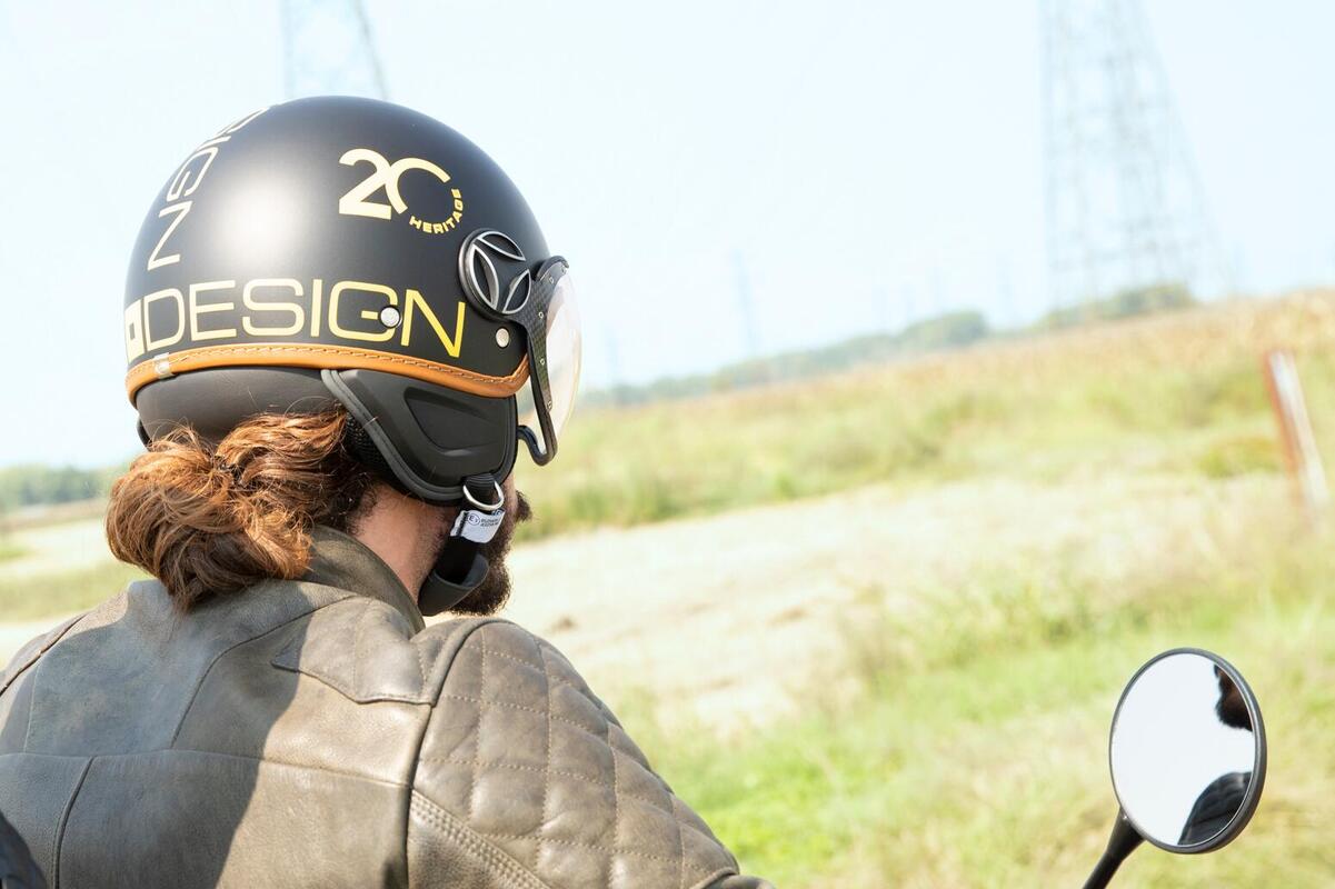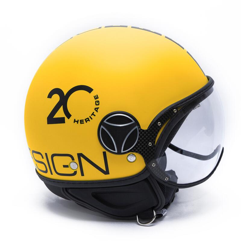 It's a symbol of urban style on two wheels, inspired by helicopter helmets, and it has become a phenomenon of costume, a trait d'union between Momodesign's past and its present: a restyling of the first four iconic colors that enhances the originality of the its design enriching it with a graphic with the inscription Heritage 20 that narrates a contemporary story.