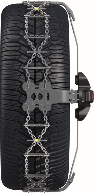 They are equipped with adjustment elements that reduce dynamic lift and allow a perfect fit on tires of different sizes.The tread is made by alternation of plates, made of a special plastic material, with the addition of hard metal studs and a special alloy steel chain, the welded plates allow to increase the grip and performance on ice and snow.