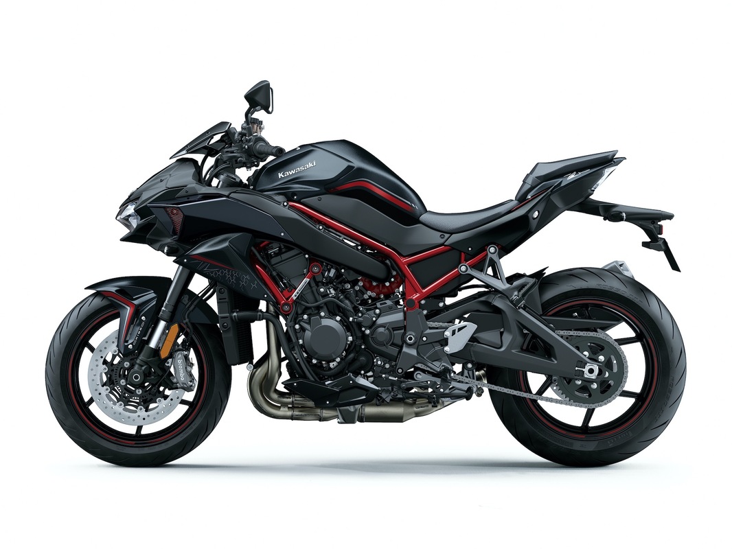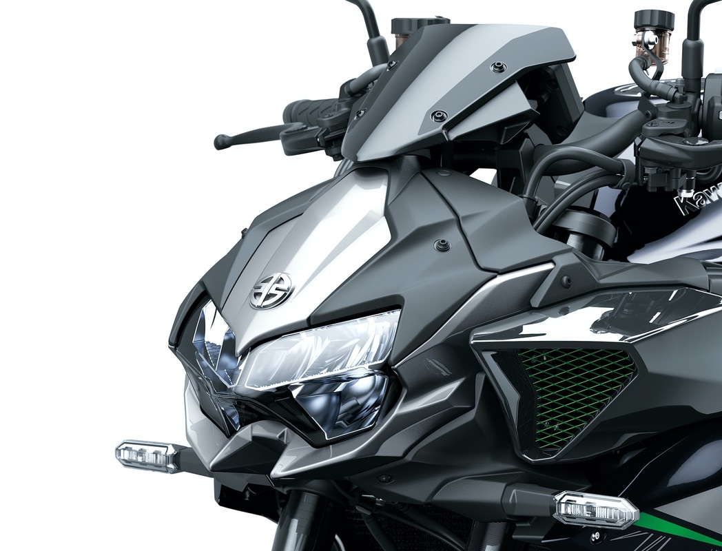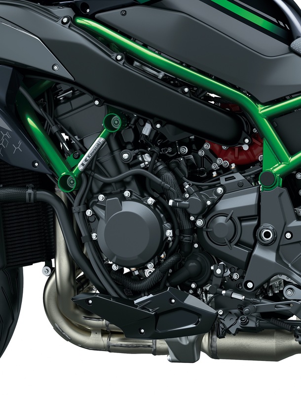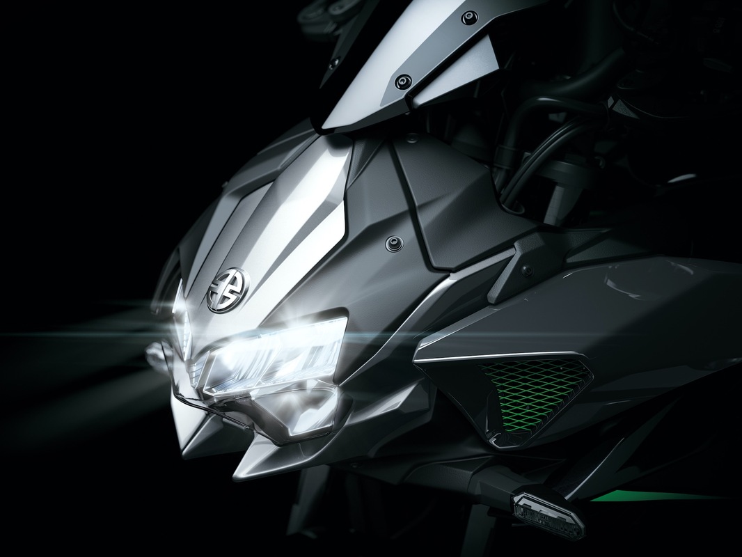 The Z-H2 loses the fairing of the SX, focusing instead on a "Sugomi" style that is, as per usual, very personal and aggressive, while the four-cylinder in-line engine has different profiles for the camshafts, a different exhaust, a shortened final drive and a chassis that shows a double-sided swingarm instead of the single-sided one of the Ninja versions.