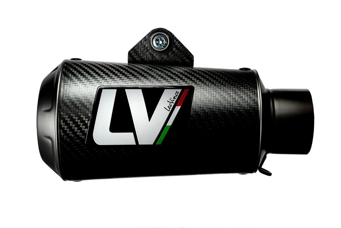 LV-10, the LeoVince exhaust line that stands out for its compactness, lightness and aggressive sound, is now enriched by a new product: the LV-10 Carbon Fiber. The double pre-impregnated carbon coating layer and the full carbon fixing bracket enhance its racing characteristics and design.