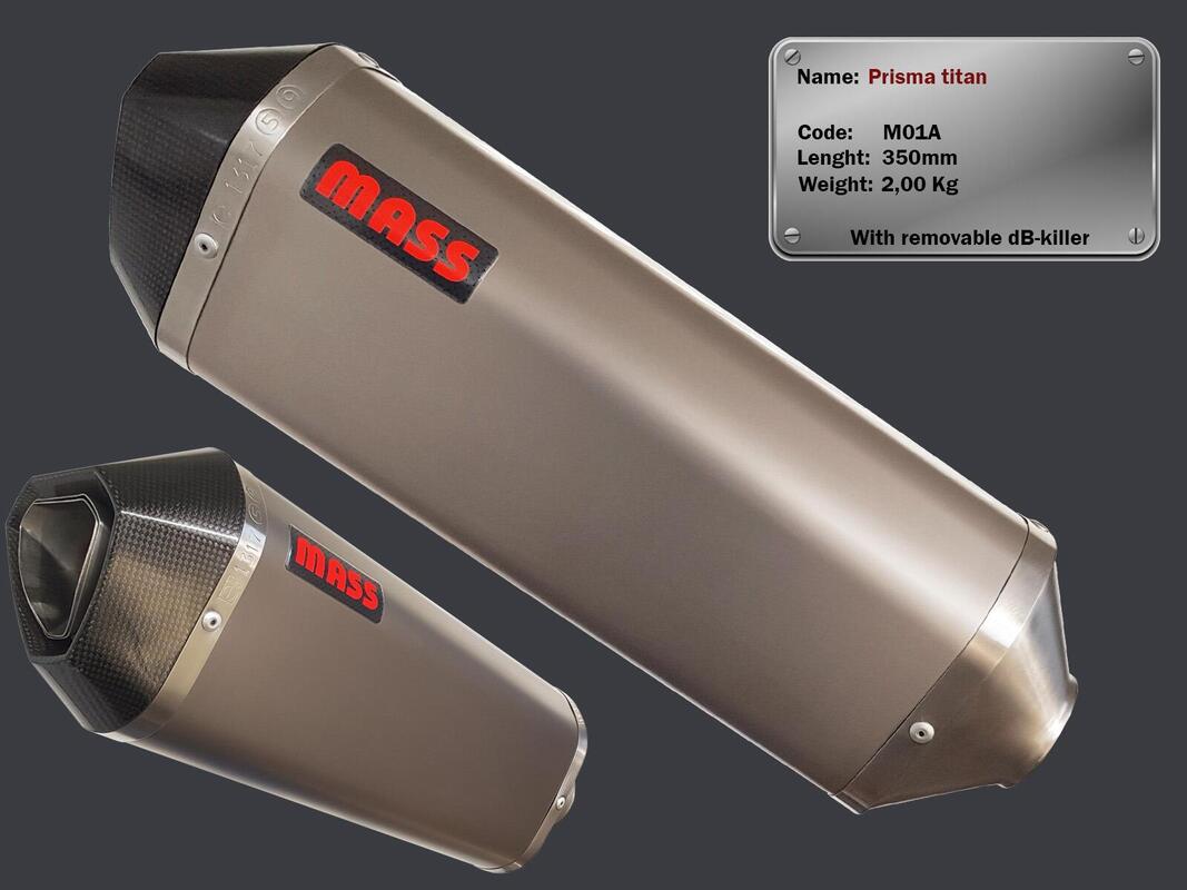 The weight of the exhaust also varies depending on the material used: from a minimum of 2 kilos for titanium to a maximum of 2.5 kilos for AISI 304 stainless steel. Available with a glossy, satin or matt black surface finish.
