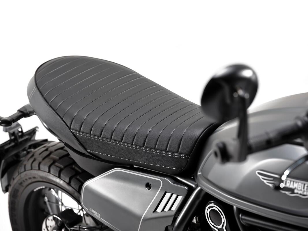 The handlebar has been changed, passing from the raised one of the Scrambler to a lower one, guaranteeing an improved control over the bike, especially on the front wheel when riding fast. This new model has been equipped with Pirelli MT 60RS tires, which are a must now on the Scrambler, fitted on spoked rimes, which are mandatory on this kind of bike