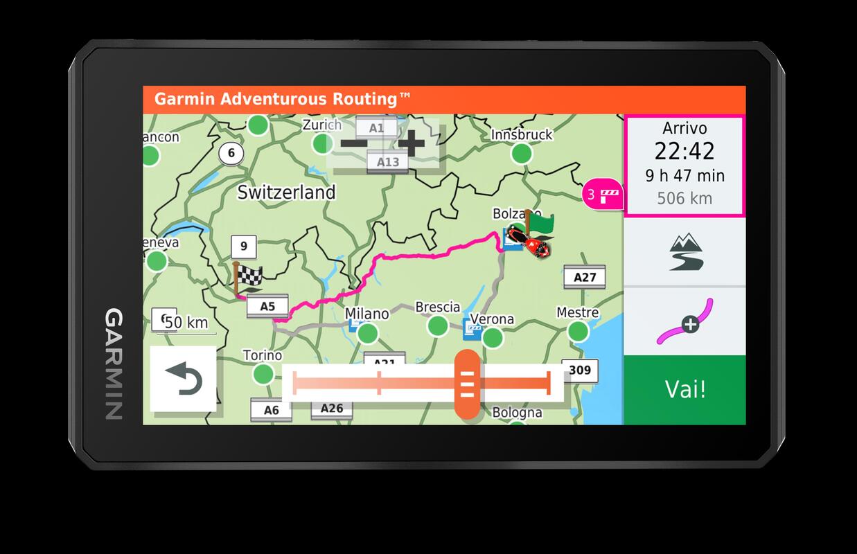 The new Garmin zūmo XT boasts a range of features specifically designed for the enjoyment of motorcycle riding. Users, thanks to the new Garmin Adventurous Routing options, will be able to discover all the charm of scenic roads, full of curves and twists, and more.