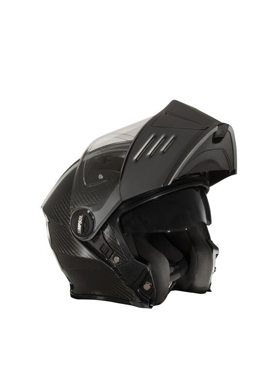 - Calotta in tricomposita o fibra di carbonio combinata con una mentoniera in lega di policarbonato