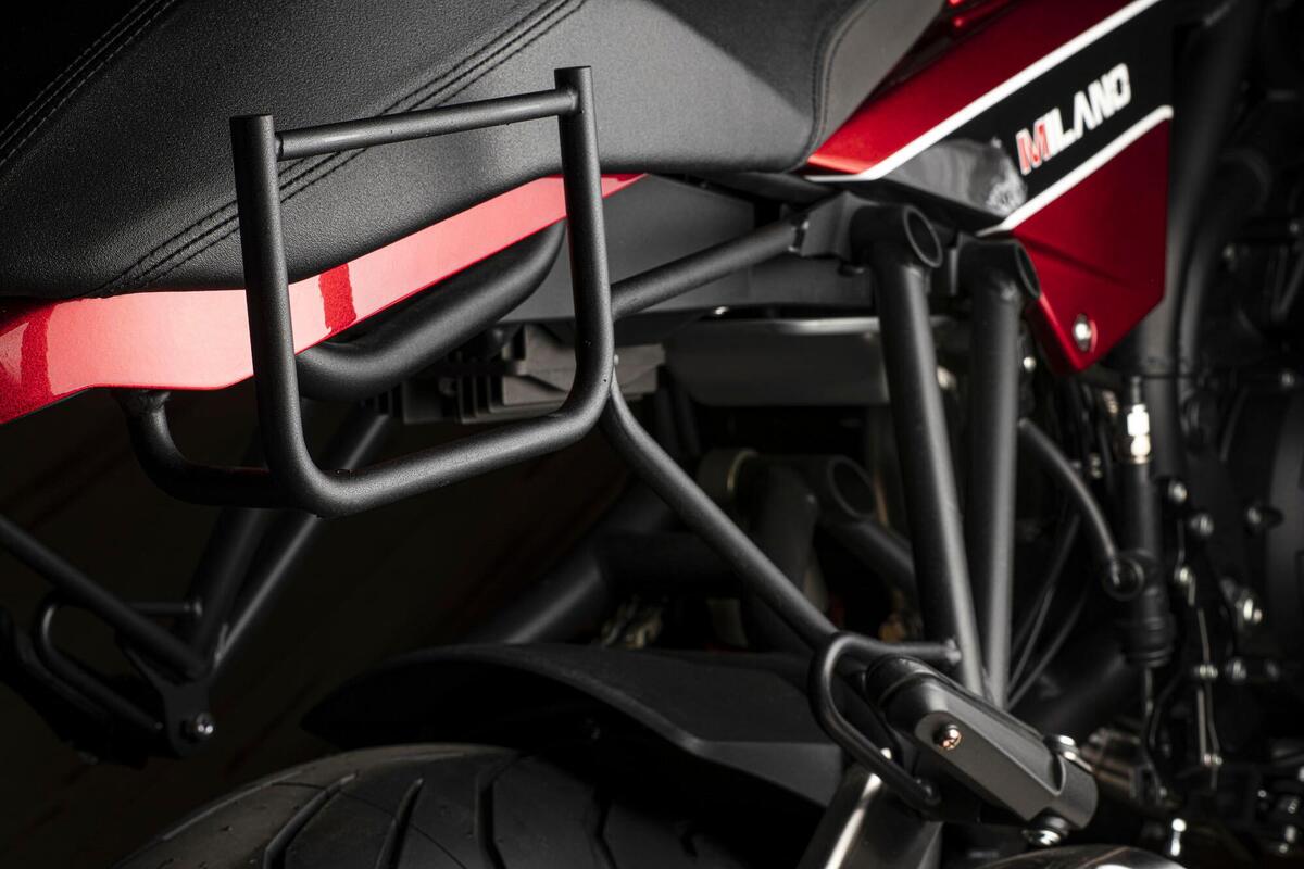 L’impianto frenante è firmato Brembo, con un doppio disco anteriore da 320 millimetri morso da pinze radiali (così come la pompa). Di serie la moto esce con gomme Pirelli Angel GT, montate su cerchi da 17”. Di alto livello anche il comparto elettronico, con un display a colori ricco di informazioni.