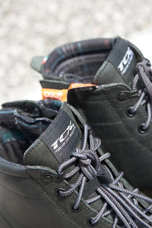 Le nuove calzature TCX sono state dotate di inserti in D3O® in corrispondenza dei malleoli, a garanzia di sicurezza ma anche di flessibilità. Infatti, le molecole di D3O® allo stato grezzo si muovono liberamente, grazie alla loro natura non-Newtoniana, permettendo al materiale di restare morbido e flessibile. In caso di impatto, le molecole di D3O® si uniscono assorbendo e dissipando l'energia, riducendo notevolmente la forza trasmessa al corpo rispetto a materiali standard.