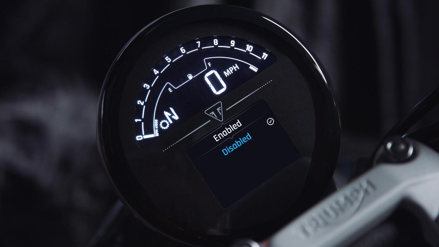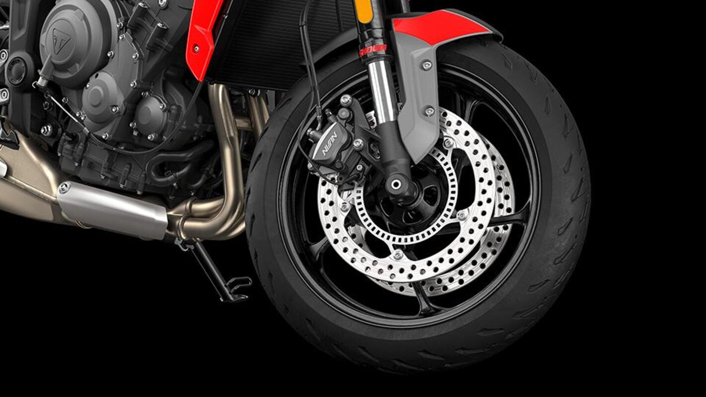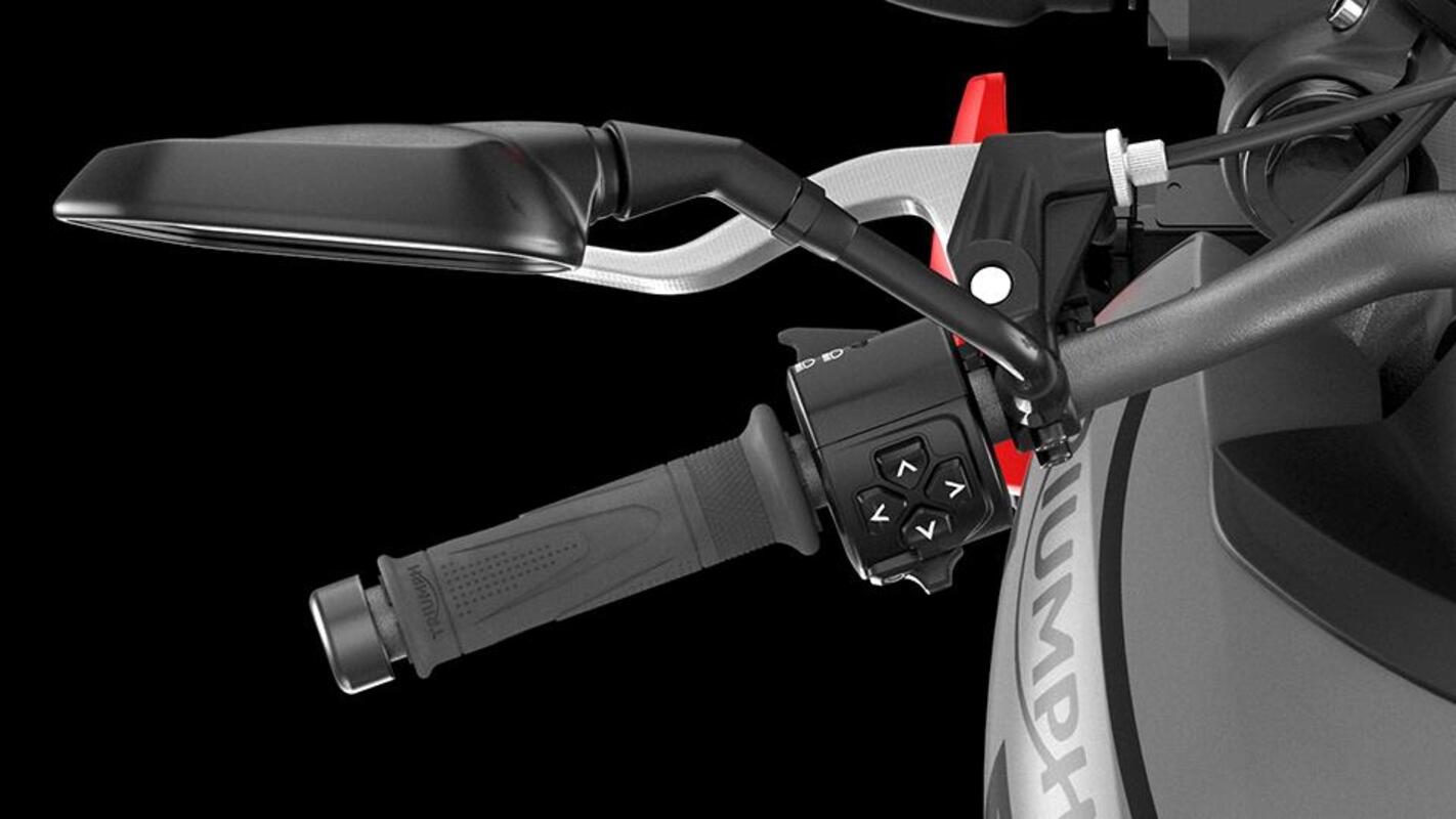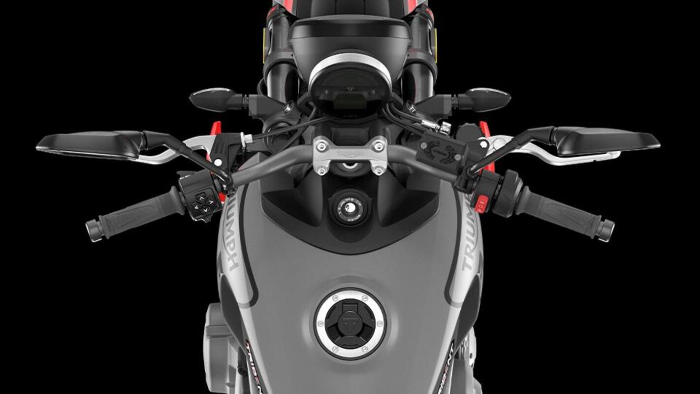 Ma dicevamo dell’elettronica. Per gestire il tricilindrico da 660 cc c’è un pacchetto molto interessante, con ride-by-wire, controllo di trazione e due riding mode. C’è un bel cruscotto misto TFT/LCD integrabile con l’app My Triumph Connectivity System che funge da navigatore, acquisizione dati, gestione smartphone e controllo per la GoPro. E c’è naturalmente l’ABS, che gestisce un impianto frenante con doppio disco da 310 mm all’avantreno e unità singola da 255 al retrotreno. Sospensioni Showa, con forcella rovesciata da 41 mm all’anteriore e monoammortizzatore regolabile al posteriore.