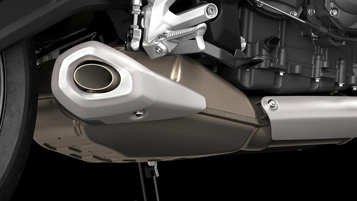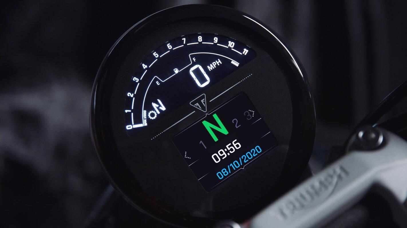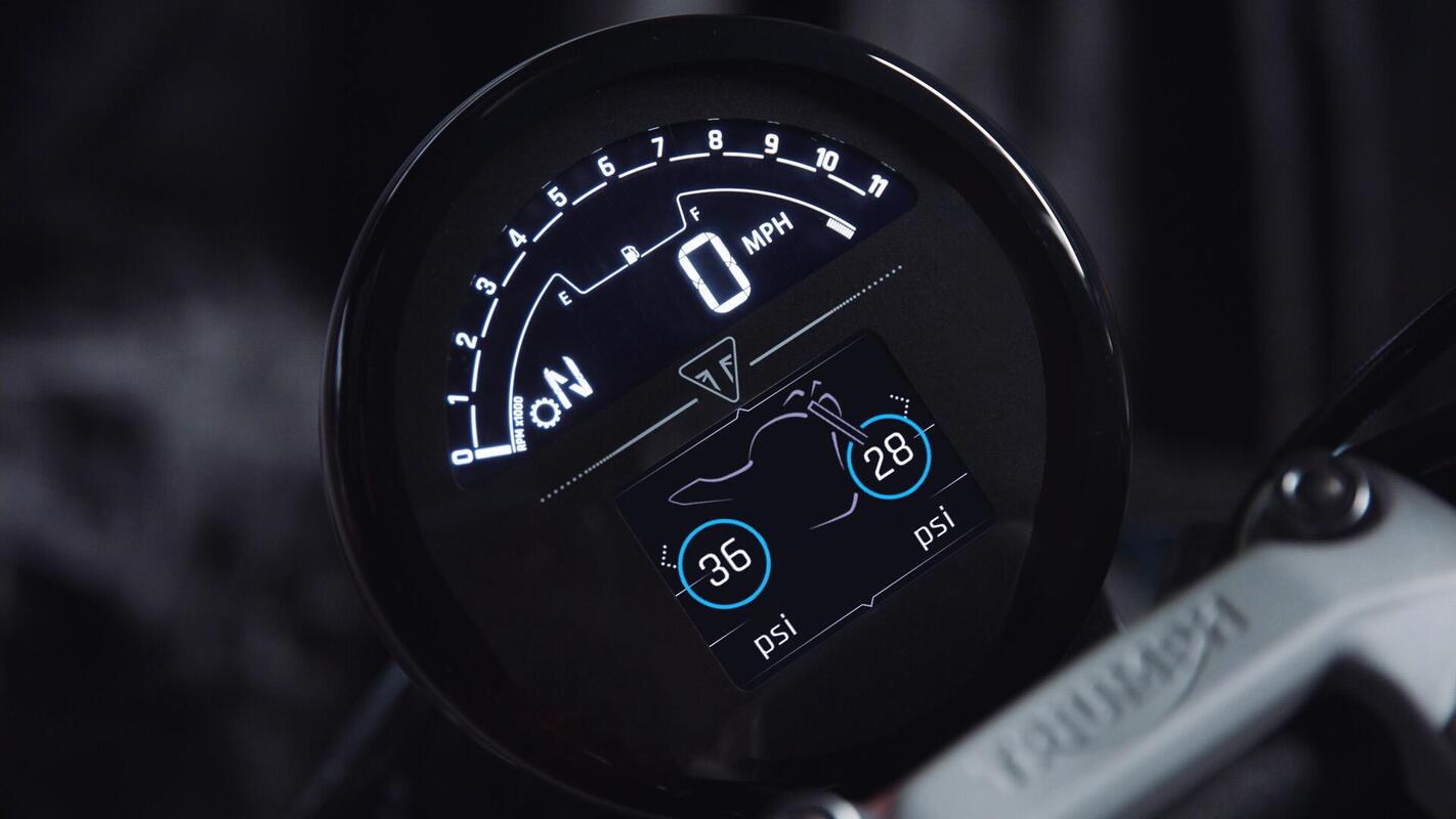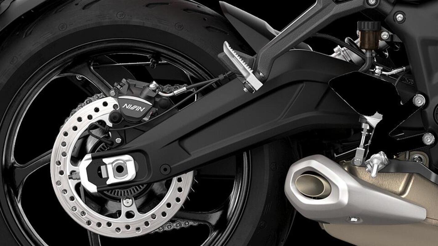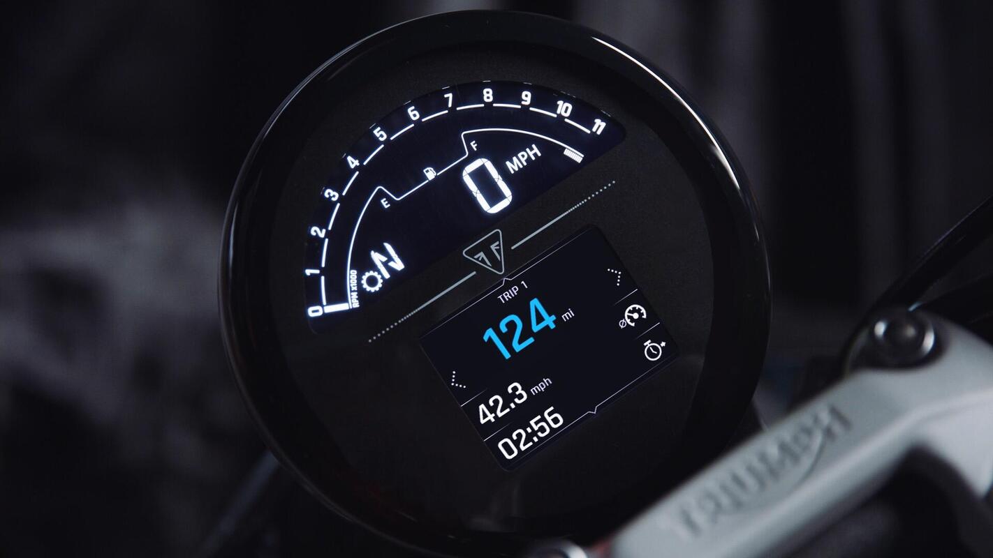 Ma dicevamo dell’elettronica. Per gestire il tricilindrico da 660 cc c’è un pacchetto molto interessante, con ride-by-wire, controllo di trazione e due riding mode. C’è un bel cruscotto misto TFT/LCD integrabile con l’app My Triumph Connectivity System che funge da navigatore, acquisizione dati, gestione smartphone e controllo per la GoPro. E c’è naturalmente l’ABS, che gestisce un impianto frenante con doppio disco da 310 mm all’avantreno e unità singola da 255 al retrotreno. Sospensioni Showa, con forcella rovesciata da 41 mm all’anteriore e monoammortizzatore regolabile al posteriore.