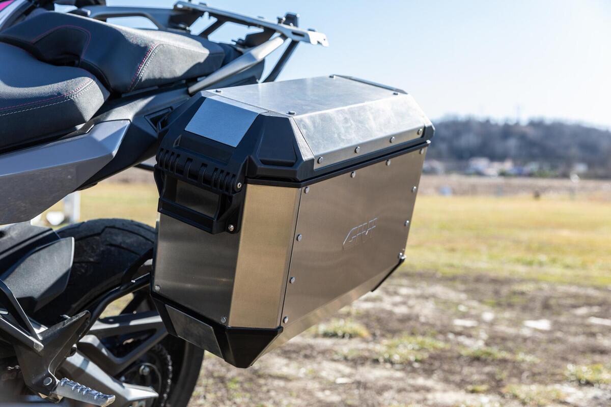 La valigia propone un design brevettato, è completamente prodotta in Italia ed è la prima, nel segmento delle laterali in alluminio adventure (quelle squadrate per intenderci), a proporre un attacco MONOKEY. Questo significa una longevità senza pari: l’utente potrà infatti utilizzarla sia su moto non più in commercio sia su quelle attuali: ad esempio spostarla da un’Africa Twin a una BMW GS a una Ténéré, di ogni generazione e probabilmente anche sulle future versioni.