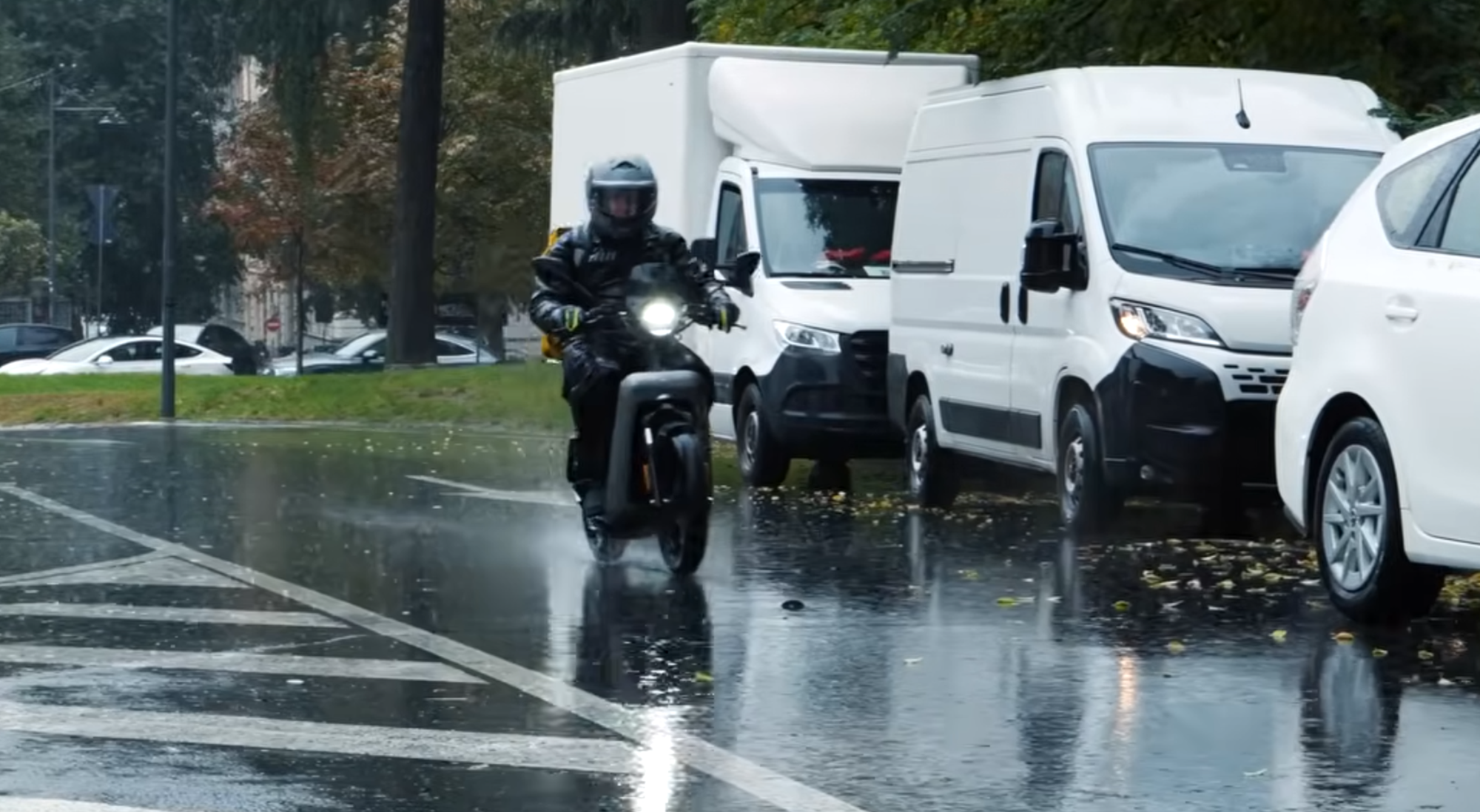 Un rider milanese consegna pizze sotto il diluvio per testare la nuova tuta antipioggia Hydroscud